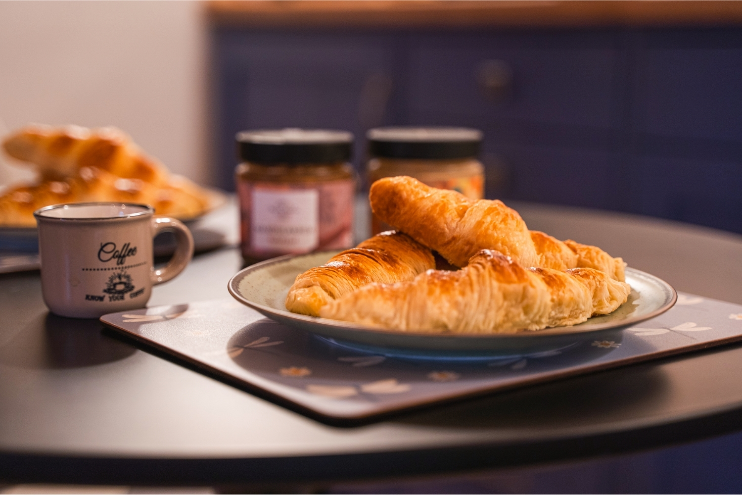 Napindító francia reggeli kérhető: 2 főre 4.000 Ft/nap (helyben sütött croissant és prémium magkrém)